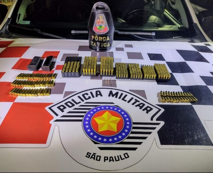 Durante o patrulhamento, os policiais abordaram o suspeito e encontraram com ele 390 munições de diversos calibres, entre elas de armas como .38, .32, .380, 7.65, 9mm e .40, além de dois carregadores de pistola.