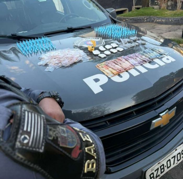 A prisão aconteceu por volta das 16h40, quando os policiais realizavam patrulhamento de rotina na região e flagraram o suspeito em atividade de tráfico.