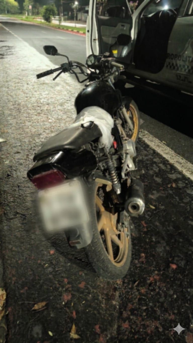 Outras equipes foram mobilizadas para apoiar nas buscas, mas os envolvidos não foram localizados. A moto foi recuperada e encaminhada à Delegacia da Polícia Civil, onde passará pelos procedimentos para identificação do proprietário e devolução.