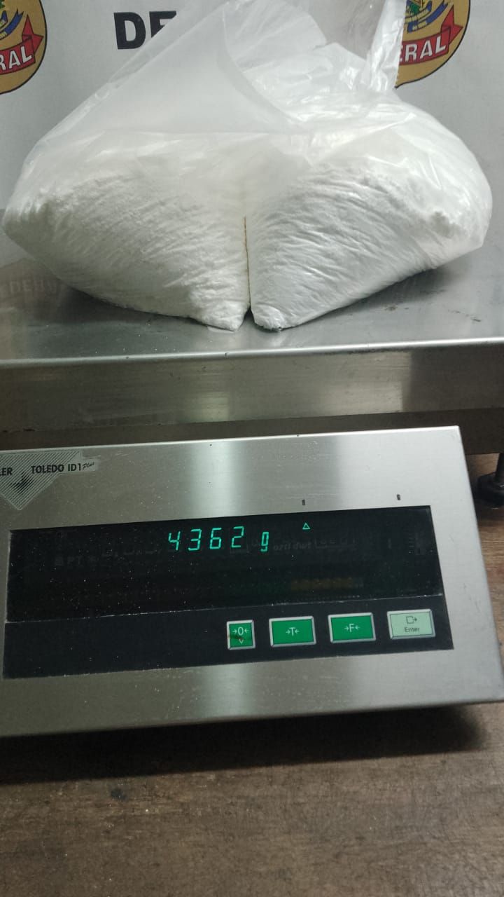 Outra apreensão foi realizada por servidores da Receita Federal, que identificaram um peruano transportando substância semelhante a cocaína escondida em produtos alimentícios. Ele havia desembarcado de um voo vindo de Lima, no Peru, e foi encaminhado à Polícia Federal. Após análise dos peritos, a substância foi confirmada como cocaína. Ao todo, foram apreendidos 10 quilos da droga.
