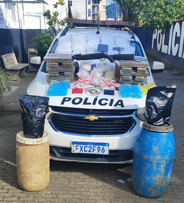 Na vistoria realizada na mata, porém, os policiais localizaram uma barraca improvisada de lona. Dentro da estrutura havia dois tonéis, em um deles, foram encontrados 27 tabletes de maconha, totalizando 28 quilos da droga. No outro, havia apetrechos usados no preparo e embalagem de entorpecentes, como balanças de precisão, milhares de pinos vazios, embalagens plásticas, peneiras, pratos, facas e uma espingarda de pressão.