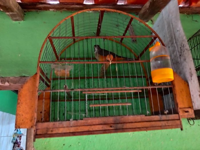 Após contato com a proprietária, a equipe realizou fiscalização no quintal da casa e localizou quatro aves silvestres: dois trinca-ferros, um sabiá-laranjeira e uma coleirinha. Em um canil, os policiais também encontraram dois pássaros da espécie bigodinho, mantidos juntos em uma única gaiola.
