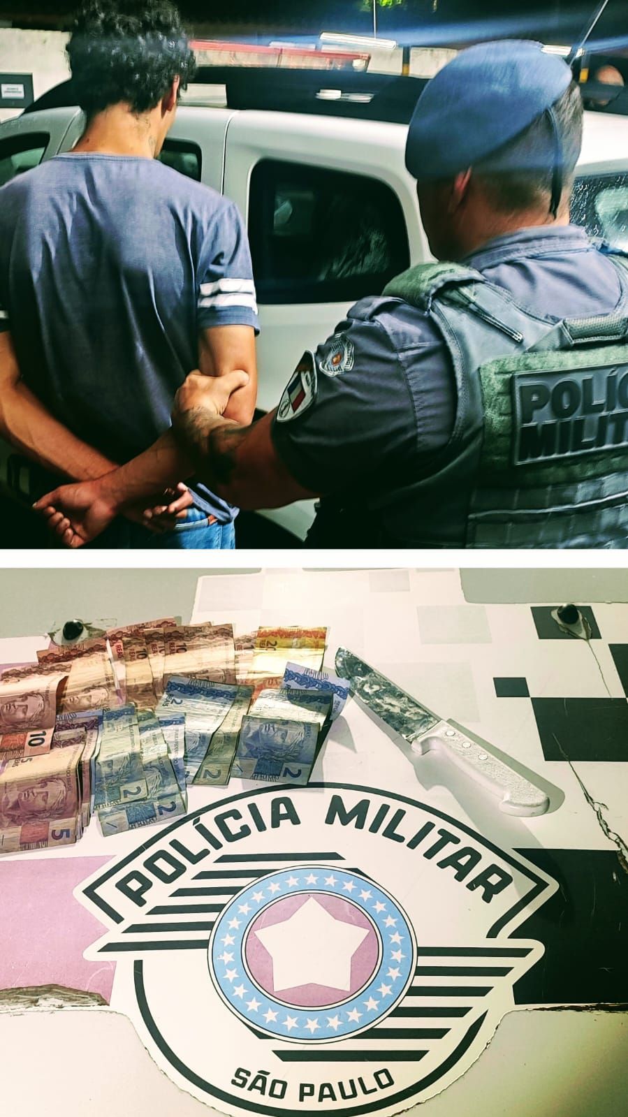 O frentista, visivelmente nervoso, confirmou por gestos que estava sendo vítima de um assalto. Na revista, os policiais encontraram R$ 140 com o suspeito, valor reconhecido pela vítima como produto do crime.