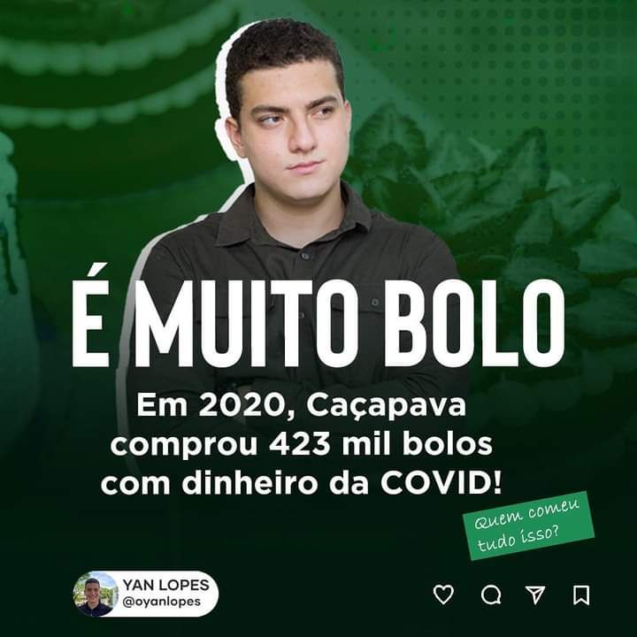 A arte que está entre as ilustrações deste texto deu o que falar na noite desta segunda-feira (08), após o vereador de Caçapava, Yan Lopes (PSC), publicar em suas redes sociais um questionamento a respeito de gastos com bolos comprados com verba destinada à Covid-19 em 2020 pela Prefeitura de Caçapava.