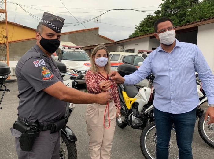 Também nesta tarde, a Deputada Federal Kátia Sastre esteve em Caraguatatuba para realizar a entrega de duas motocicletas para a Polícia Militar. Essas motocicletas irão compor a frota de viaturas destinadas a Atividade Delegada que atua no apoio à prefeitura na fiscalização do comércio local.