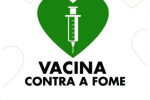A campanha convida as pessoas que podem se vacinar contra a COVID-19 a doar um quilo de alimento não perecível
