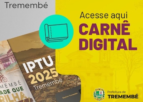 Os contribuintes de Tremembé já podem acessar a versão digital do carnê do IPTU 2025 no site da Prefeitura (tremembe.sp.gov.br). O documento pode ser baixado a partir desta segunda-feira (10), bastando informar o número de inscrição do imóvel.