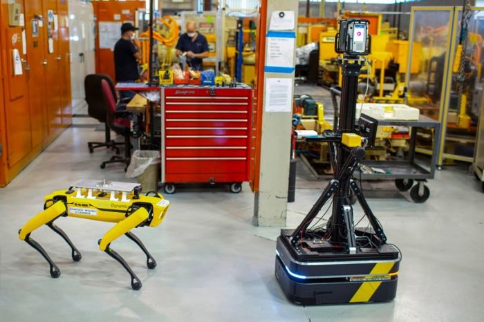 Alugados da Boston Dynamics - conhecida por criar robôs móveis sofisticados - os autômatos estão sendo usados na fábrica de transmissões Van Dyke, em Michigan. Eles são equipados com cinco câmeras e podem andar a até 5 km/h com uma bateria com cerca de duas horas de duração, escaneando o chão de fábrica para auxiliar os engenheiros a atualizar a planta.