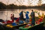 Com canoas e barcos, devotos percorrem o Rio Paraíba até Aparecida
