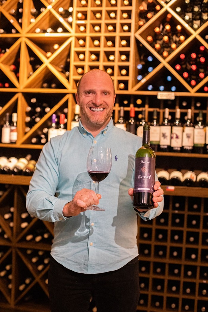 "Este vinho, elaborado com a Tannat é de grande personalidade e de longo potencial de guarda. De cor vermelho rubi escuro, apresenta aromas de frutas negras, cerejas, especiarias, baunilha e leve tostado. Na boca é um vinho intenso, com taninos e acidez equilibrada, um conjunto em perfeita harmonia. Estamos muito felizes em ter um vinho que retrata toda nossa qualidade a venda em nosso espaço", pontouou o diretor e sommelier.
