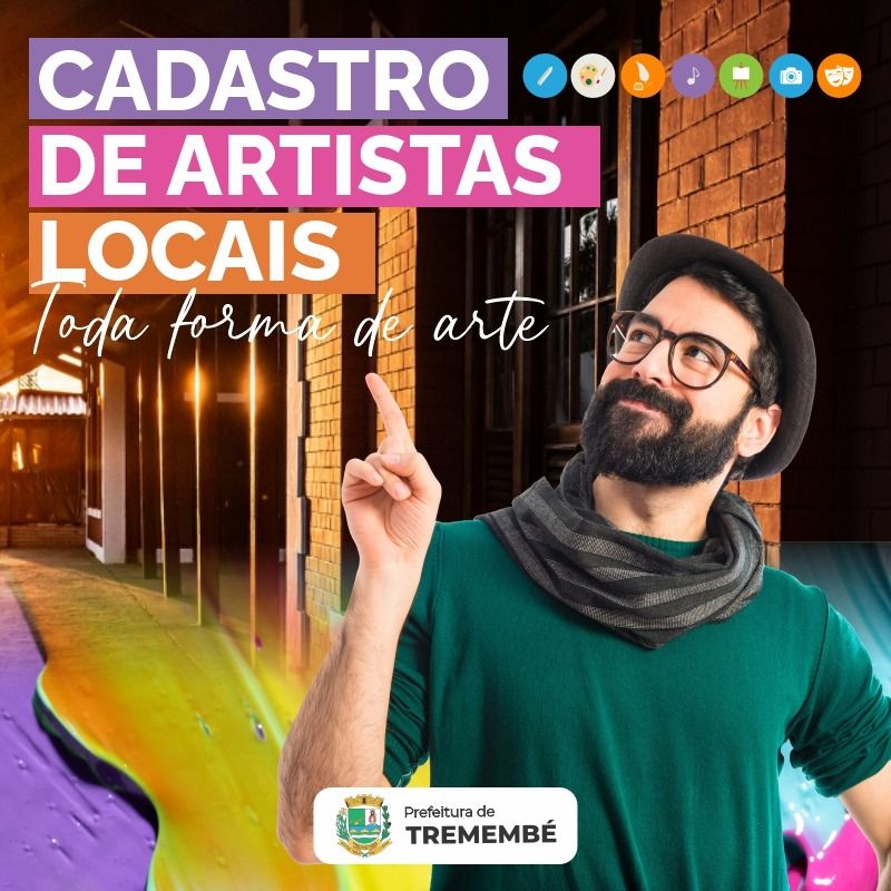 A Prefeitura Municipal por meio da Secretaria de Cultura e Turismo, convida toda a classe artística do município para realizar o cadastramento para futuras contratações em eventos realizados na cidade.