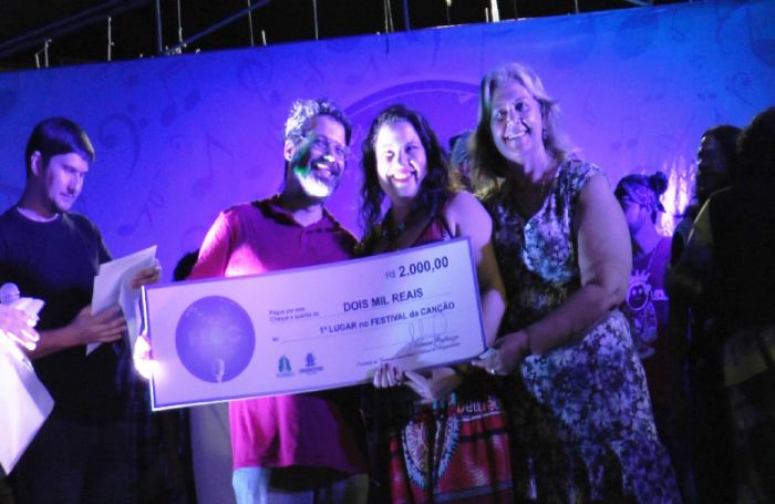 Vencedores do Festival da Canção recebem cheque de R$ 2 mil (Foto : Divulgação)O 2º FECC - Festival da Canção de Caraguatatuba realizado no fim de semana, teve como grande vencedora a música 'Lua de Luz', do pianista Samuel Gustinelli, letra de Marilia Abduani e interpretação de Aline Outa, de Ilhabela. Eles receberam R$ 2 mil oferecidos pela Escola de Música E-Brasil e o direto de gravar a canção.