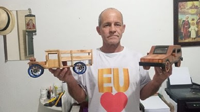 O mineiro Elias Donizete, 55 anos, veio para São José em 2010. Conta que acabou se tornando artesão por necessidade, desde que ficou desempregado. Sua esposa, que já tinha um certo dom artístico, foi sua maior incentivadora a aprender o ofício de carpintaria e produzir peças de uso e decoração, com madeira e alumínio.