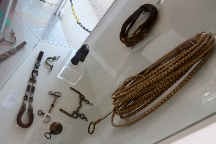 Completo, o acervo conta com 43 peças pertencentes ao Museu Nossa Senhora Aparecida, do Santuário Nacional, e traz diversos acessórios que fazem parte da indumentária dos antigos tropeiros, como estribos, caçambas, fivelas, freio, relho, focinheira, cincerros, guampa, cordas, chicote, tacho, panela de ferro, chocolateira, almofariz com mão, candeeiros, garfos, caneca, punhal com bainha, espora, isqueiro, porta pavio e outros.