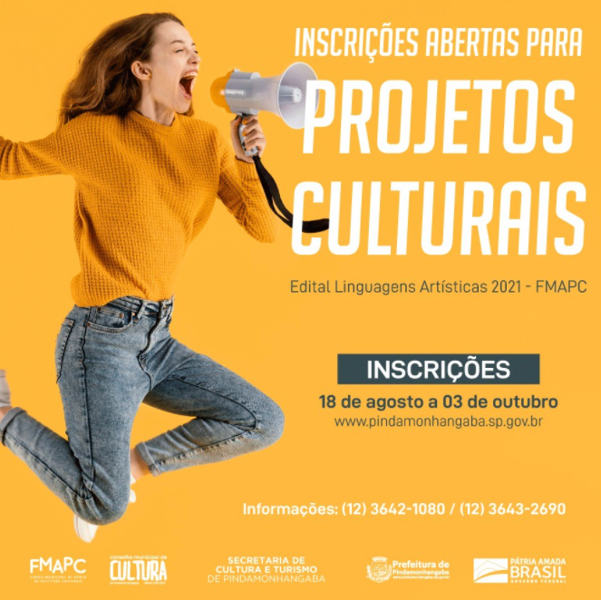 A Prefeitura de Pindamonhangaba através da Secretaria de Cultura e Turismo, abre as inscrições para Projetos Culturais pertencentes aos benefícios do Fundo Municipal de Apoio às Políticas Culturais (FMAPC) para o ano de 2021.