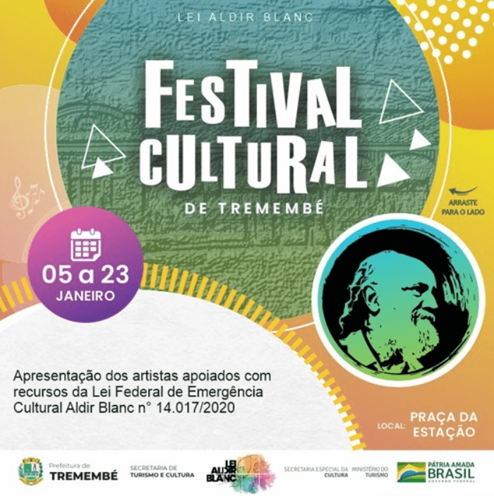 "Por meio do Festival Cultural de Tremembé estamos valorizando e promovendo nossos artistas locais, ao mesmo tempo que utilizamos os recursos enviados pelo Governo Federal para apoiar financeiramente essa classe de profissionais, entre pessoas físicas e jurídicas, que foram muito impactados pela pandemia. As apresentações acontecem todos os dias ao ar livre na Praça da Estação, respeitando os protocolos de higiene e segurança e oferecendo para a população uma opção segura de entretenimento cultural", explica Silas Augusto, assessor de Eventos da Secretaria de Turismo e Cultura.