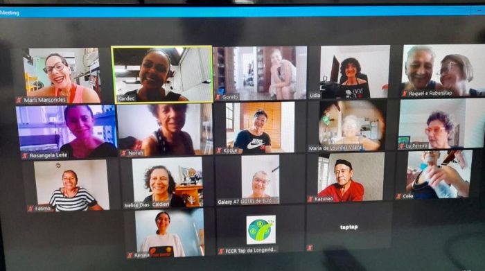 Com a pandemia, alunos de 45 e 80 anos passaram a se reunir virtualmente para aprender novos passos e ensaiar coreografias. "Nós aprendemos a fazer sapateado, no modo online, juntos. Os coloquei para trabalhar em todo o processo, desde pesquisa a produção de figurinos. O resultado foi uma entrega total desses alunos", afirma a professora Aline Carneiro, coordenadora do Tap da Longevidade.