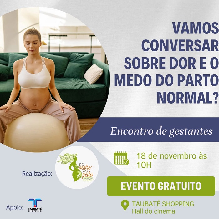 Neste sábado (18), acontece a 2ª edição do evento "Do ventre ao Peito", no Taubaté Shopping. A ação gratuita, acontece no hall do cinema, às 10h, e é direcionada para gestantes, puérperas e lactantes, prometendo ser uma experiência enriquecedora e esclarecedora para todos os presentes.