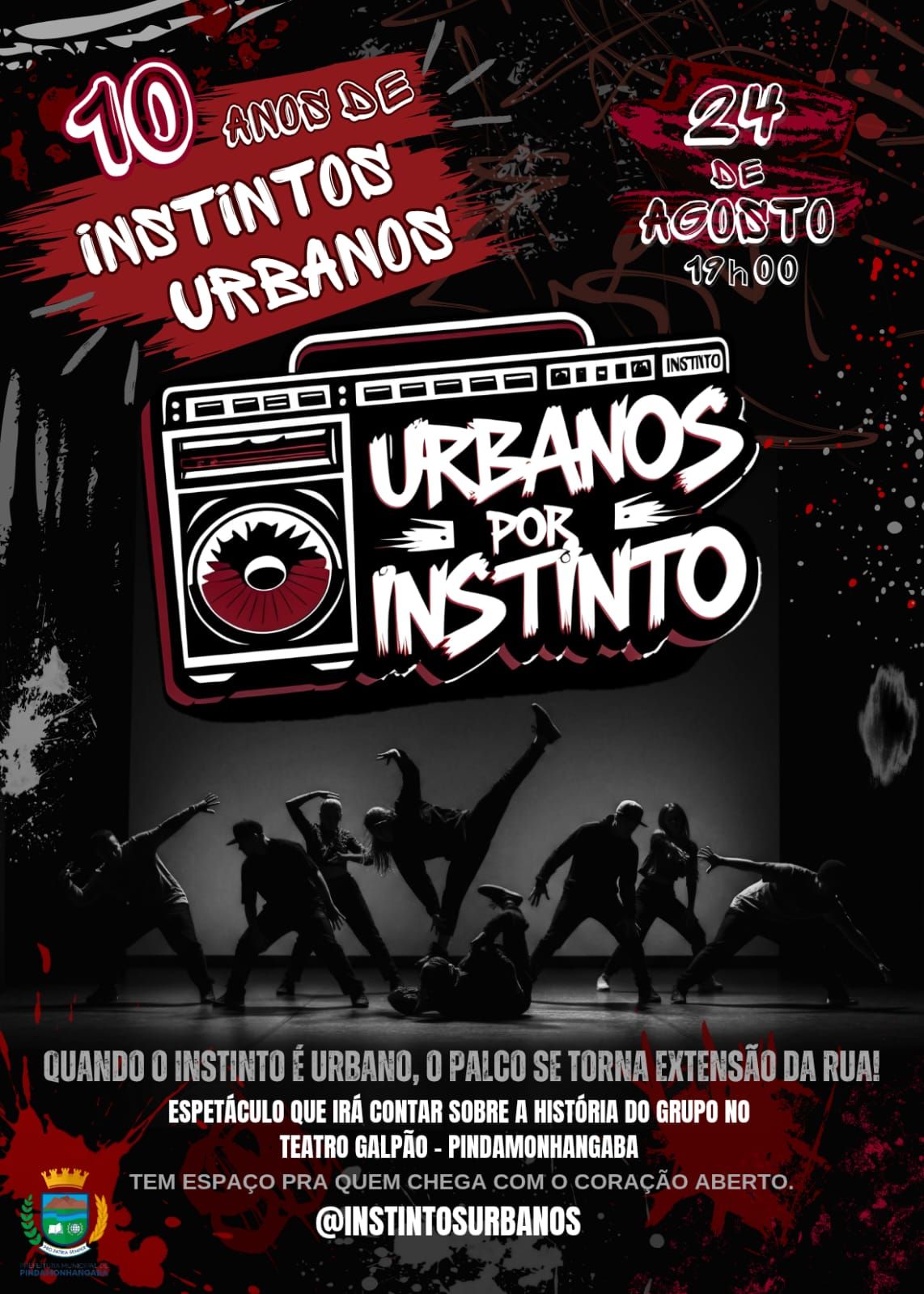 O Teatro Galpão, em Pindamonhangaba, será palco de um espetáculo vibrante e cheio de energia no próximo domingo (24), às 19h. Em comemoração aos seus dez anos de trajetória, o grupo Instintos Urbanos apresenta "Urbanos por Instinto", uma produção especial que promete emocionar e surpreender o público.
