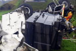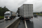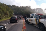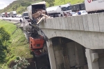 Com o impacto, parte da cabine invadiu a faixa da esquerda da pista sentido RJ