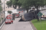 O acidente aconteceu pela curva da alça de acesso da Avenida Dr. Sebastião Henrique da Cunha Pontes