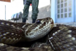 O homem conseguiu colocar o animal em um galão para entregar à Polícia Ambiental