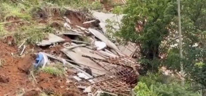 Casa é destruída após deslizamento de terra na Rodovia Oswaldo Cruz, em Ubatuba