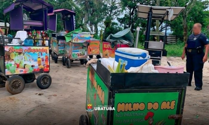 Fiscalização apreende 18 carrinhos de ambulantes irregulares na Praia Grande, em Ubatuba