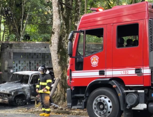 Incêndio em veículo é registrado na Rodovia Oswaldo Cruz